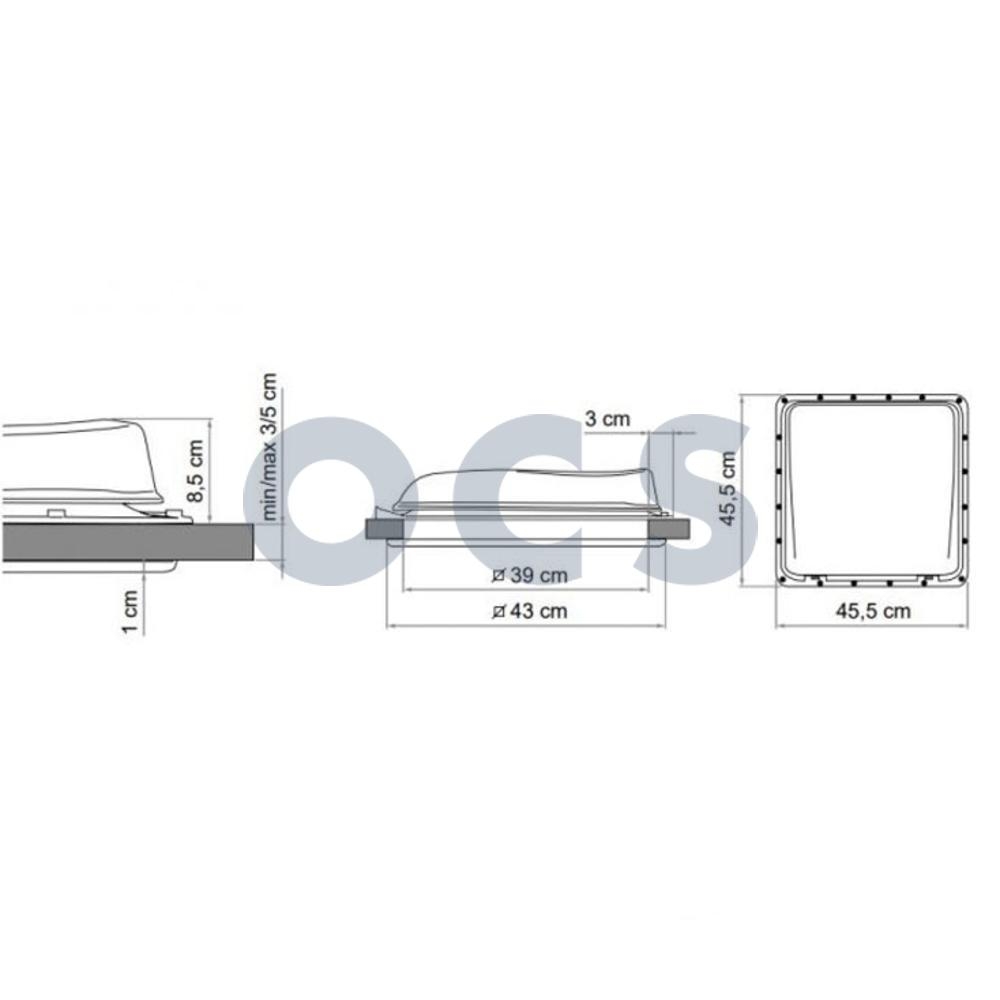 Hij is uitwisselbaar met oudere Fiamma dakluiken 40x40cm en met dakluiken van 36x36cm tot 42x42cm dankzij het verbeterde frame.
