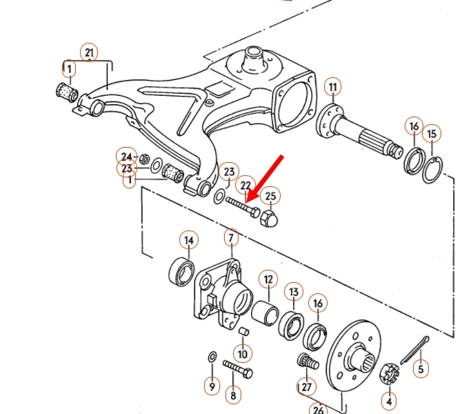 | English description: | 5/1979-7/1992 Bolt for wishbone, front, lower and wishbone rear, M12x1.5x105 |