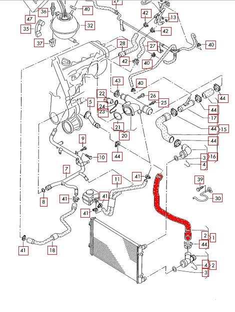 Van motor naar motorkoeler, Inbouwplaats: Onder