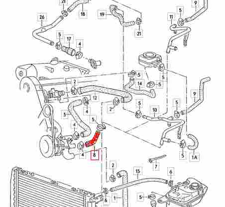 Radiateurslang Audi 80 (van waterpomp naar waterslang) 026121063N