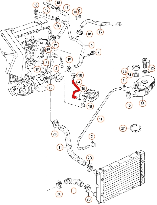 | English description: | Radiator hose, water flange to oil cooler | |||||||