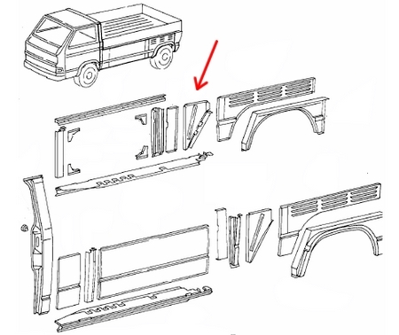 | English description: | Partition plate, right, inner, suitable for VW T3 pickup |